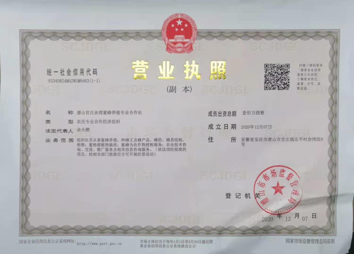 合作社營(yíng)業(yè)執(zhí)照